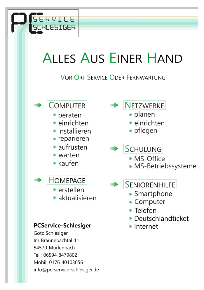 hier eine Zusammenstellung meines Angebots (mein Werbeplakat)